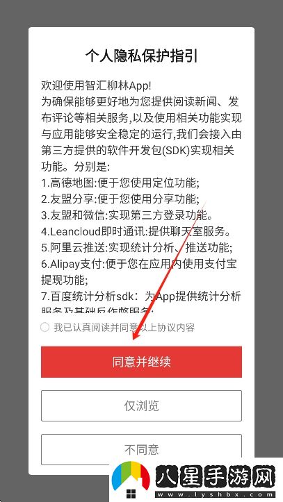 1、在本站下載安裝智匯柳林app并打開(kāi),首先同意智匯柳林app的用戶(hù)協(xié)議