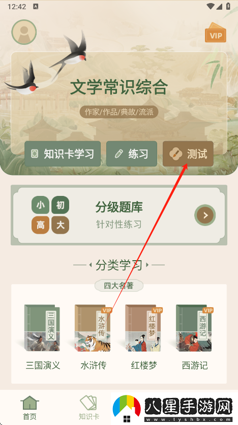 2、點(diǎn)擊測試立即進(jìn)行文學(xué)常識測試