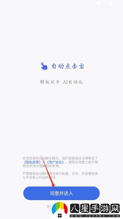 2、進(jìn)入后閱讀并同意自動(dòng)腳本精靈app的用戶(hù)協(xié)議