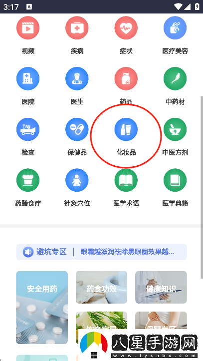 1、在首頁(yè)點(diǎn)擊化妝品功能