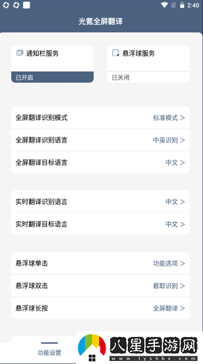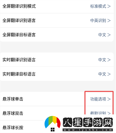 1.在軟件的【功能設置】板塊內,你可以在線(xiàn)進(jìn)行 實(shí)時(shí)翻譯功能,且用戶(hù)可以選擇把選取的文字進(jìn)行搜索、拼音、復制、或者是翻譯,用戶(hù)還可以選擇選取文字的數量。