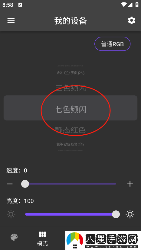 2、在模式界面下,我們可以選擇三色頻閃、七色頻閃等一系列模式。